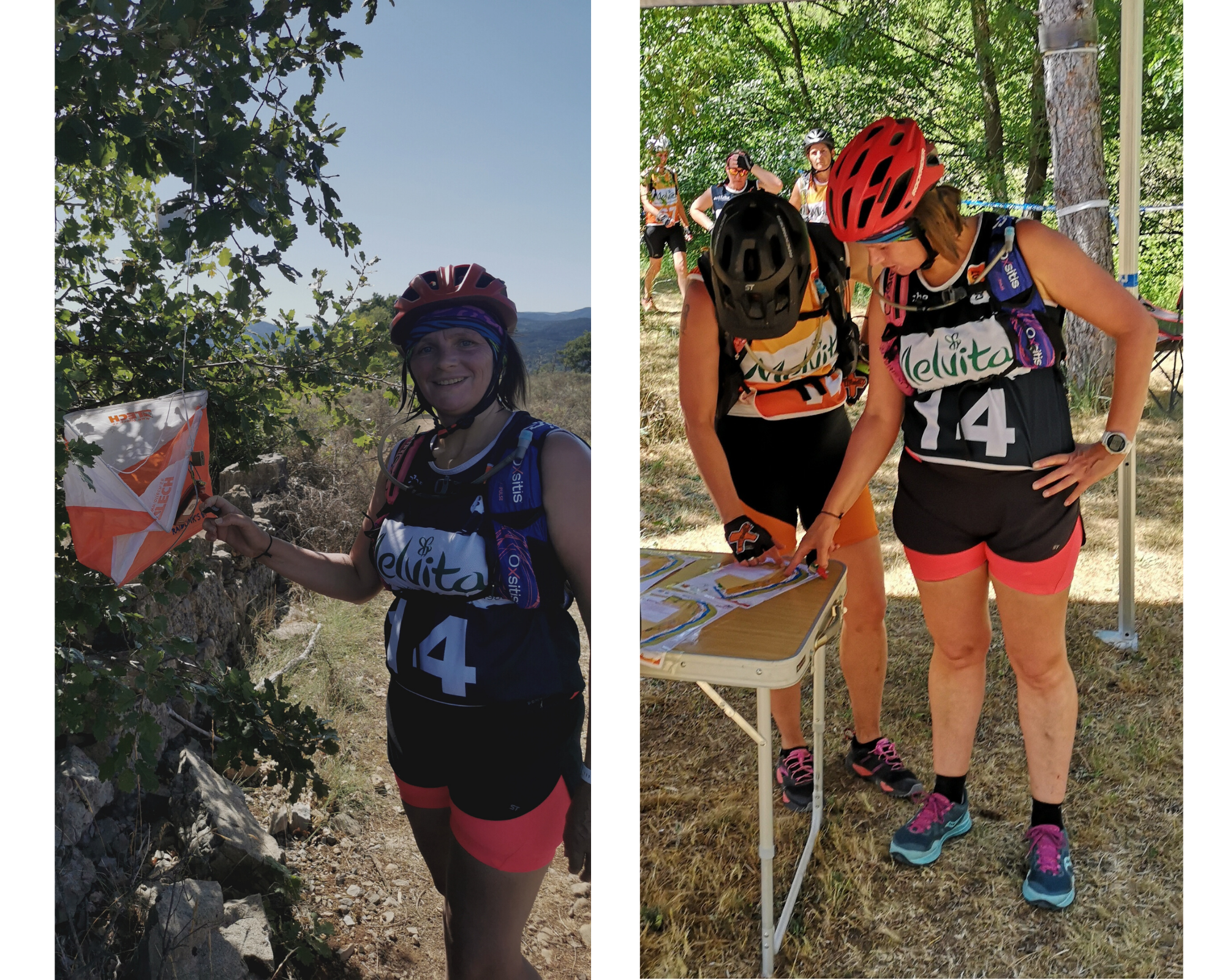 Section 3 : CO mémo, nous retrouvons nos hommes et enfants sur le lieu de départ de la CO que nous faisons en marchant tellement il fait chaud. J’avale un gel « coup de frais » à l’huile essentielle de menthe poivrée qui me fait un bien fou. Nos hommes nous vident une bouteille d’eau sur la tête avant qu’on reparte sur les VTT.