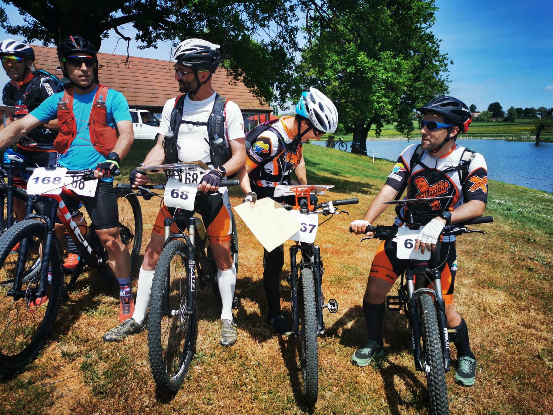 Sur la 1ere section à VTT , les équipes XTTR se placent aux avants-postes et ca ne traine pas devant ! Puis ils enchainent Trail’O et Run & Bike sous un soleil de plomb .... l'aprem va être longue !