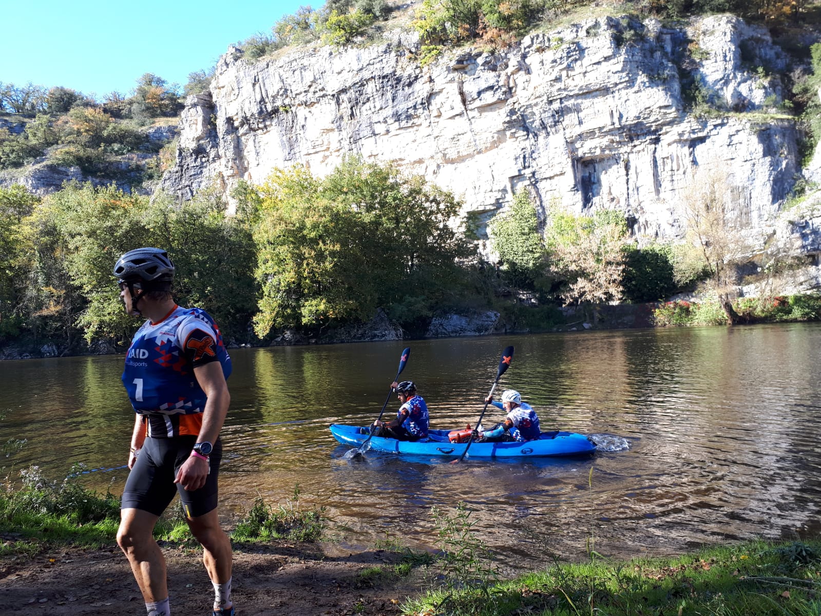Le décor est splendide pour le départ, et le restera tout au long du périple. Ça attaque avec un prologue dans la falaise de Rocamadour sous forme de relais trail. On se promet de ne pas se mettre dans le rouge, et bien évidemment on ne tient pas la promesse. A l’issue de ces 3*5 minutes à 180 pulses on prend les VTT en seconde positions mais ça reste anecdotique tellement les écarts sont infimes.