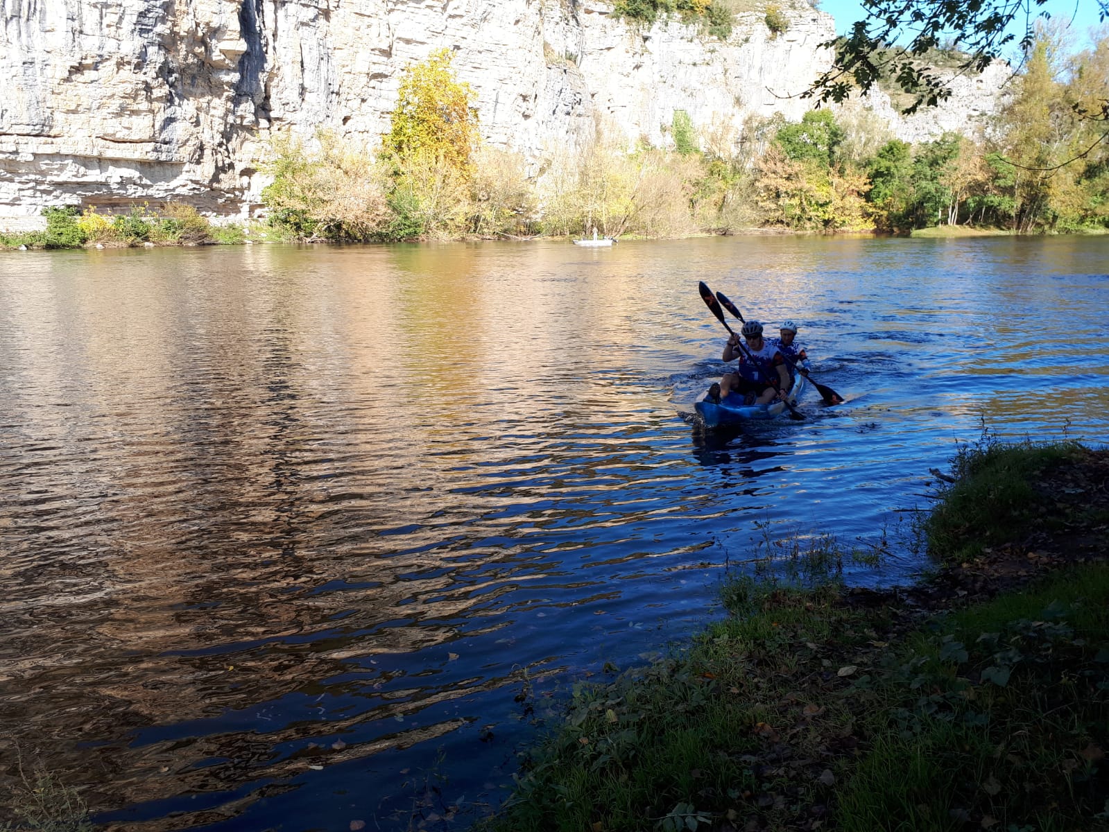 S3 : Re-transition express et c’est parti pour 20km de VTT balisé. Pas de carte, rien de plus simple il suffit d’appuyer sur les pédales et ouvrir l’œil. LSN n’est plus en vue et l’on est dans un groupe de 3 avec Absolu et 400 teams. A l’entrée de Loubressac, alors 400 Teams file droit dans le virage Dav nous appel car il y a une flèche au sol. On commence une belle descente en suivant les flèches. Ca fait tilt, on doit suivre de la rubalise et le marquage au sol est vieillot : on a loupé un truc. Bim 5 minutes de perdu… on dirait bien que l’on va se faire un 24H façon Reymond BOISSERIE. On garde un rythme élevé et rallions Carennac pour embarquer en canoë.