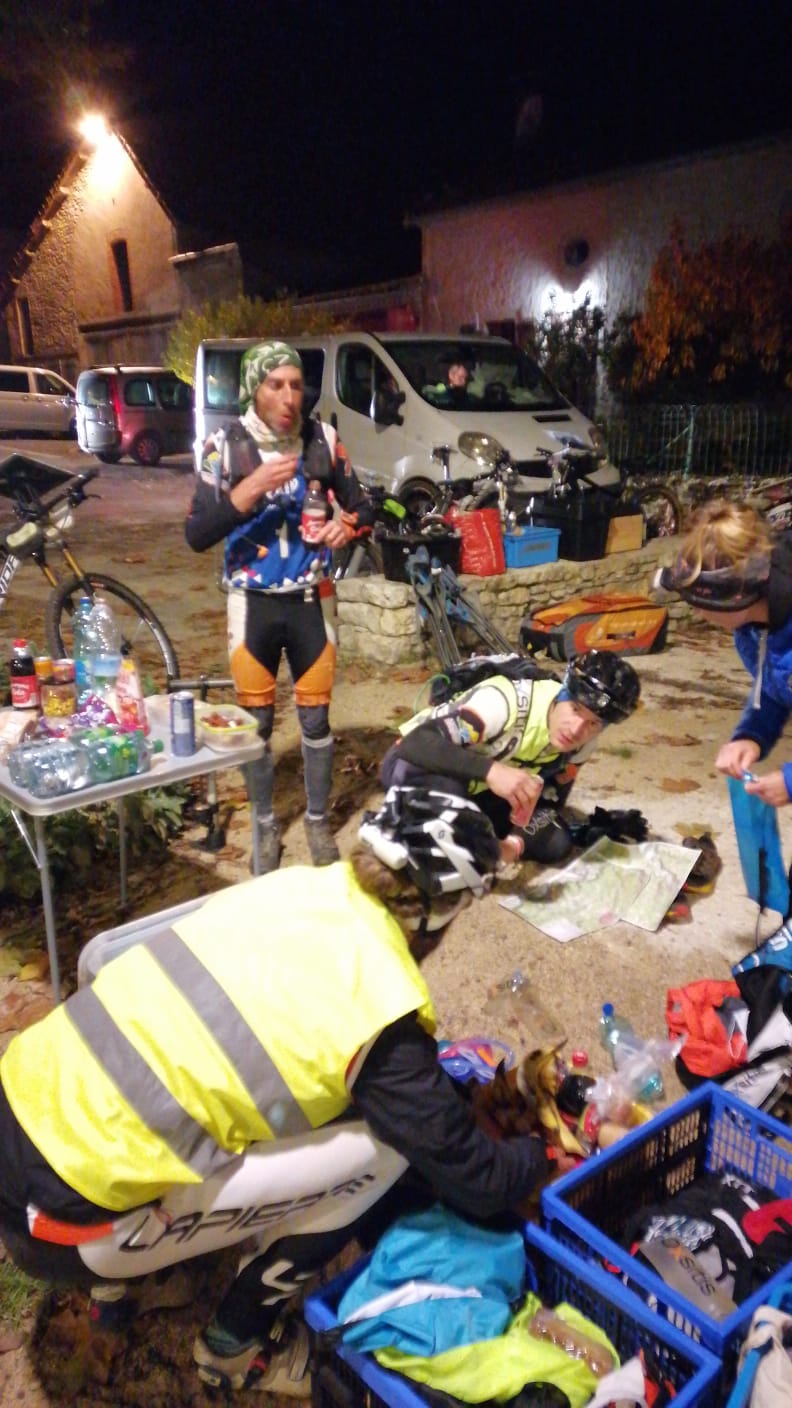 On vide les doigts, mince 10 minutes de péna car l’un de nous n’a pas pointé une balise. Ça fait mal aux --- de lacher si bêtement du temps, mais disons que c’est le métier qui rentre. La nuit est glaciale et une froid de plus c’est Caro qui nous réchauffe avec son accueil. Elle doit en être à 1 tonnes de manipée entre les VTT et les différentes caisses. Tout ça avec le sourire. Respect !