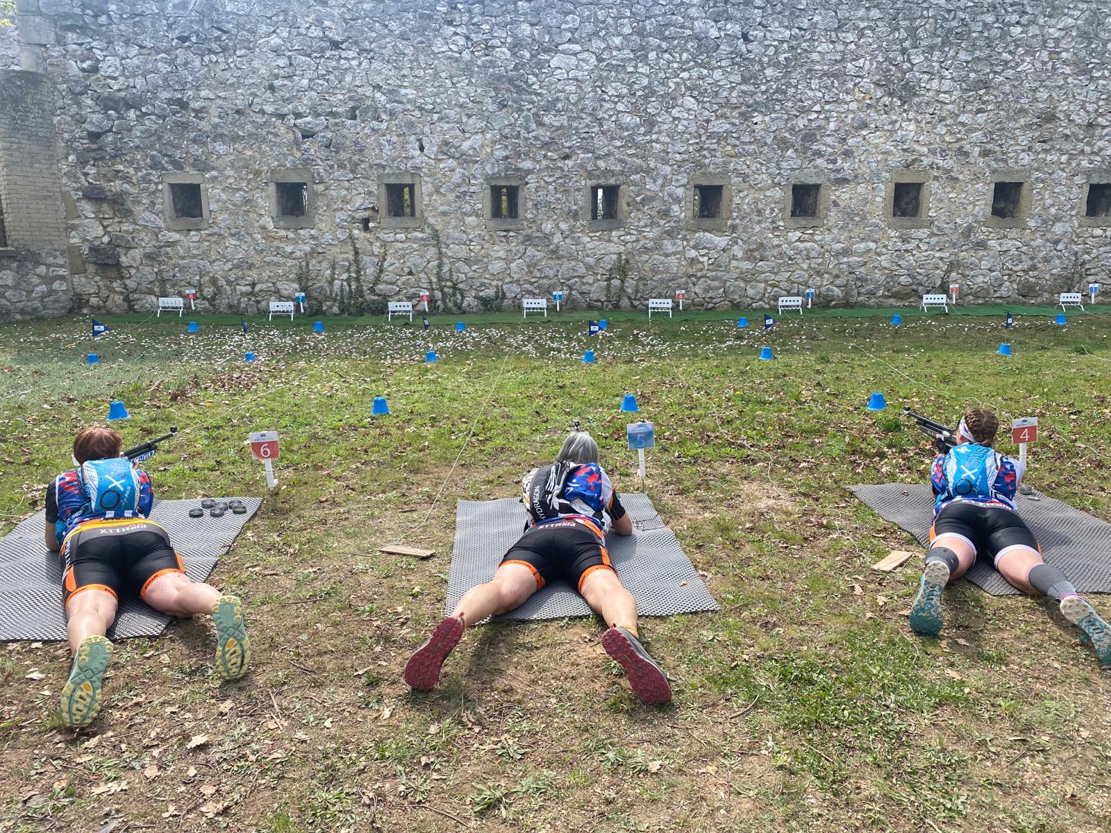 Section de 6km de part et d'autre du ruisseau de Jergne avec de belles vasques. L'unique balise se mérite, alors pour compliquer la chose, on décide quand même d'aller chercher la balise Bonus, 1km5 de + en dévers mais 1h30 de gagné et 2 belles chutes pour Maddy, c'est fou ce que ça glisse l'Ardèche ! Retour sur 4 km roulant sous la pression de Caro pour retrouver le château et les 2 dernières sections. Tir couché, type biathlon, dans la cour du château, 4 tirs réussis sur 5 pour chacune, on file pour 2 petits tours de château avant de redescendre dans le centre-ville de St Péray pour le final de cette aventure : une CO mémo ! Comme on l'avait conseillé à Caro, elle ferme les yeux et suit Maddy qui excelle dans cette discipline... :-)
