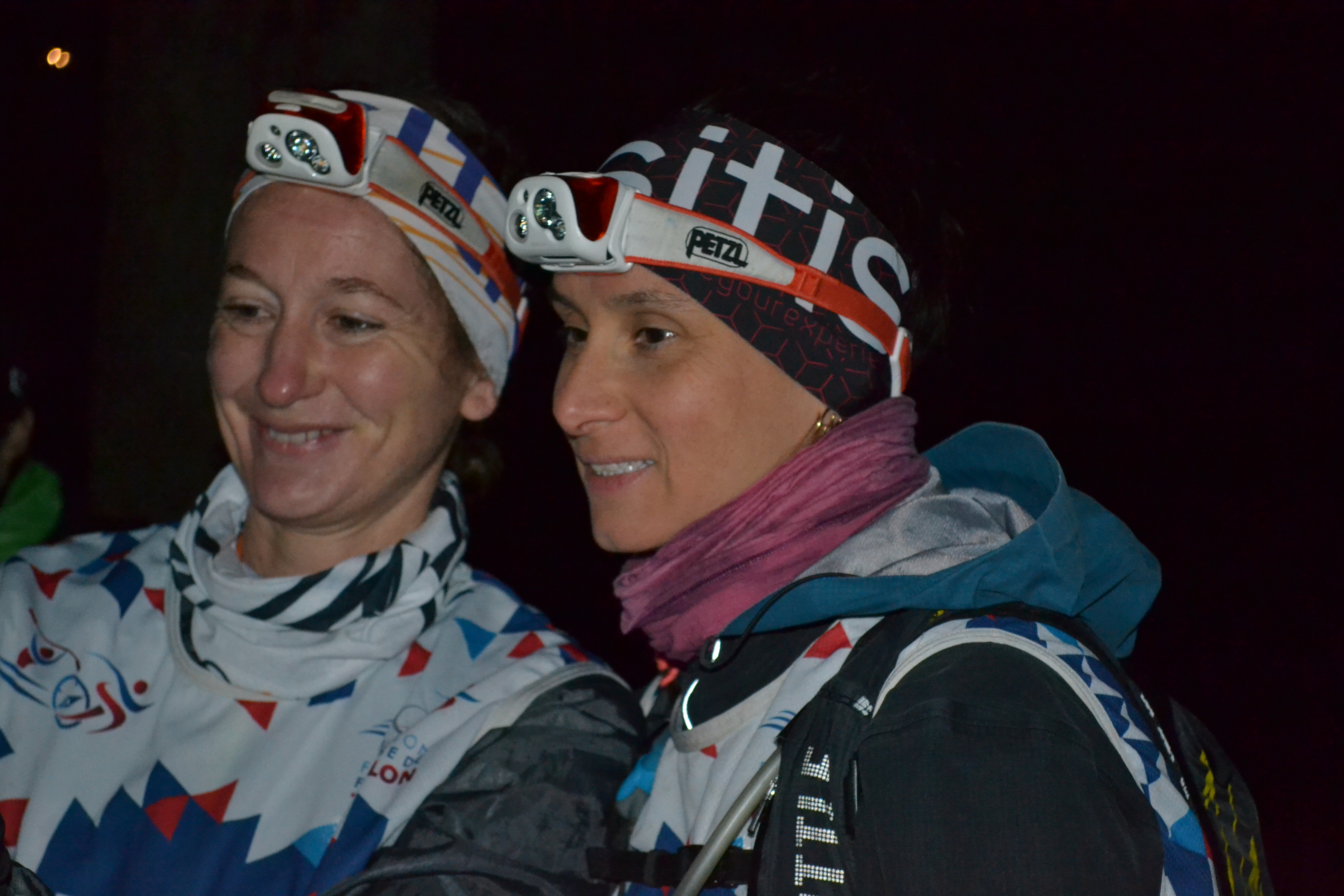 Réveil à 5h15 (4h15) pour Maddy et Caro .... ça pique un peu ! Toilette rapide, tenue multi-couches (4°C annoncé au lever du jour), petit dej' : on est prête pour cette belle journée qui nous attend ! 6h45 nous voilà dans la cour du château de Beauregard pour le briefing à la frontale : ça caille un peu !