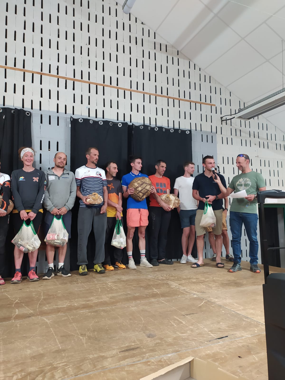 La soirée est très conviviale, la remise des prix aussi ! On remporte un panier garni avec Juliette et une grosse miche de pain ! On apprécie . La soirée se termine sous un orage digne d'un soir d'été !