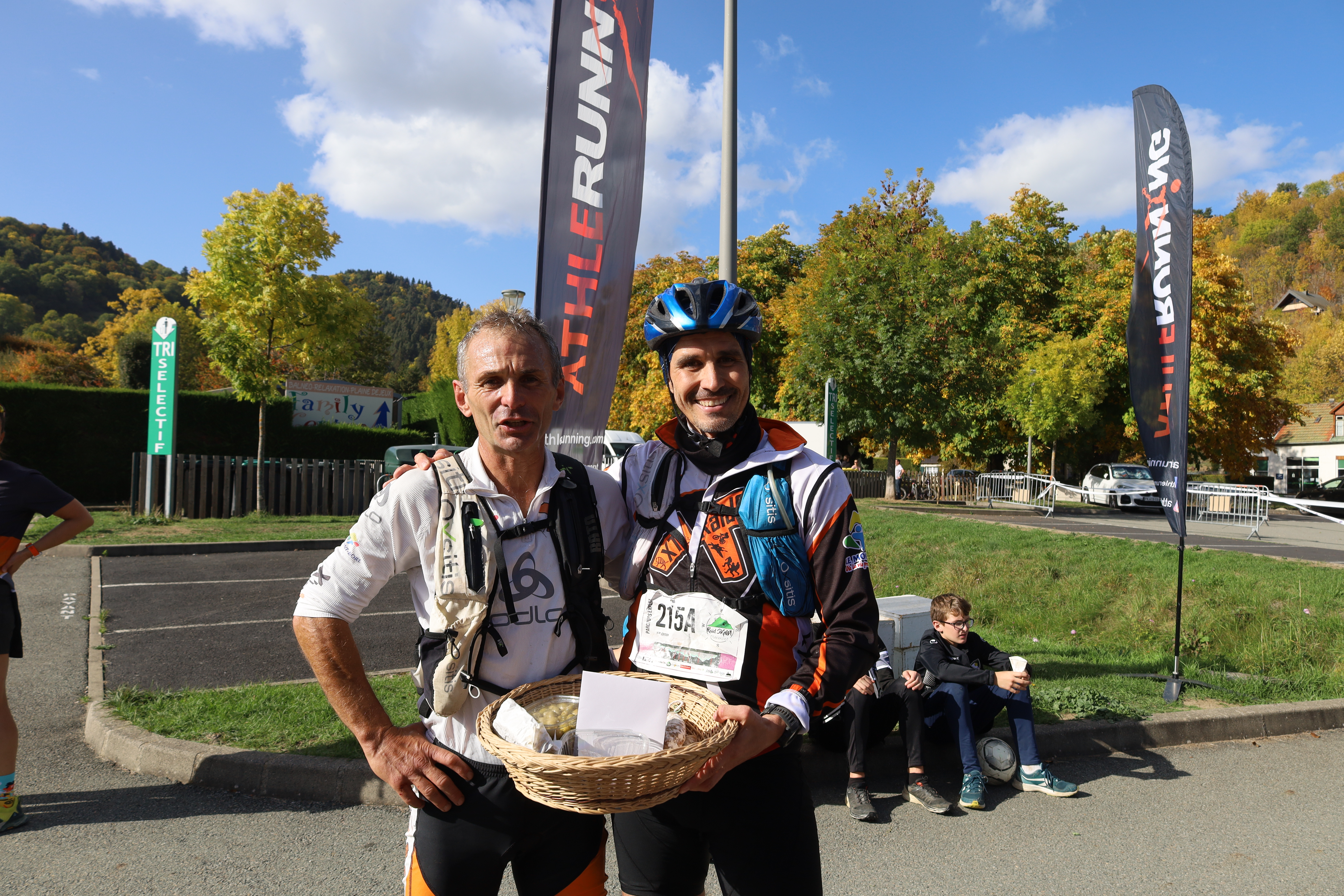 Merci à mon co-équipiers pour sa bienveillance à mon égard car je sais qu’il en avait encore sous la semelle et bonne surprise à l’arrivée car on termine 4éme au scratch mais premier des « vieux » et on reçoit donc un panier garni.