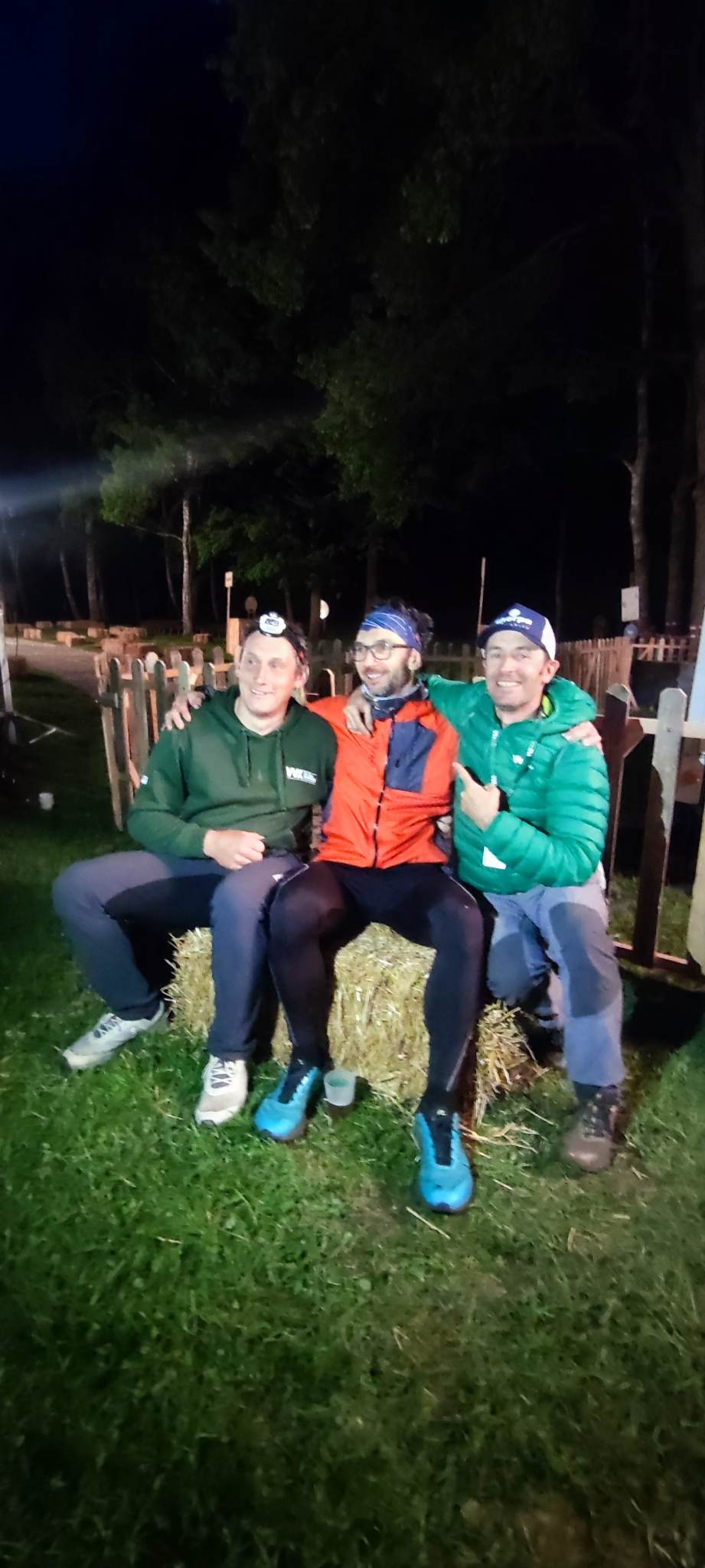 Les premiers km sont très durs, les quadris me font mal. Je croise deux blaireaux qui chassent et aperçois une frontale devant moi. Je ne force pas mais reprends doucement une allure de course à pied. Logiquement, je reprends le coureur devant moi : Meulan Clément finisher en 39h00. Il jardine souvent mais sa montre le remet sur le droit chemin. Nous devons être hyper vigileants car nous approchons de la Stèle et il y a beaucoup de chemins non tracés sur la carte. À partir de la Stèle, je connais : on emprunte le parcours du 60km du Sancy puis on laisse Chamablanc sur la gauche et je continue à serpenter sous les rochers de Bozat. Le jour se lève lentement et j’éteins ma frontale, un soulagement. Les Capucins en vue, dernière descente bien raide pour arriver à la base vie du Mont Dore. Il est 6h30, j’ai mis 5h sur cette étape. J’ai du mal à être content. Je me permets 10 minutes de sommeil en même temps que la kiné s’occupe de mes cuisses et mollets. Ensuite je mange un peu.