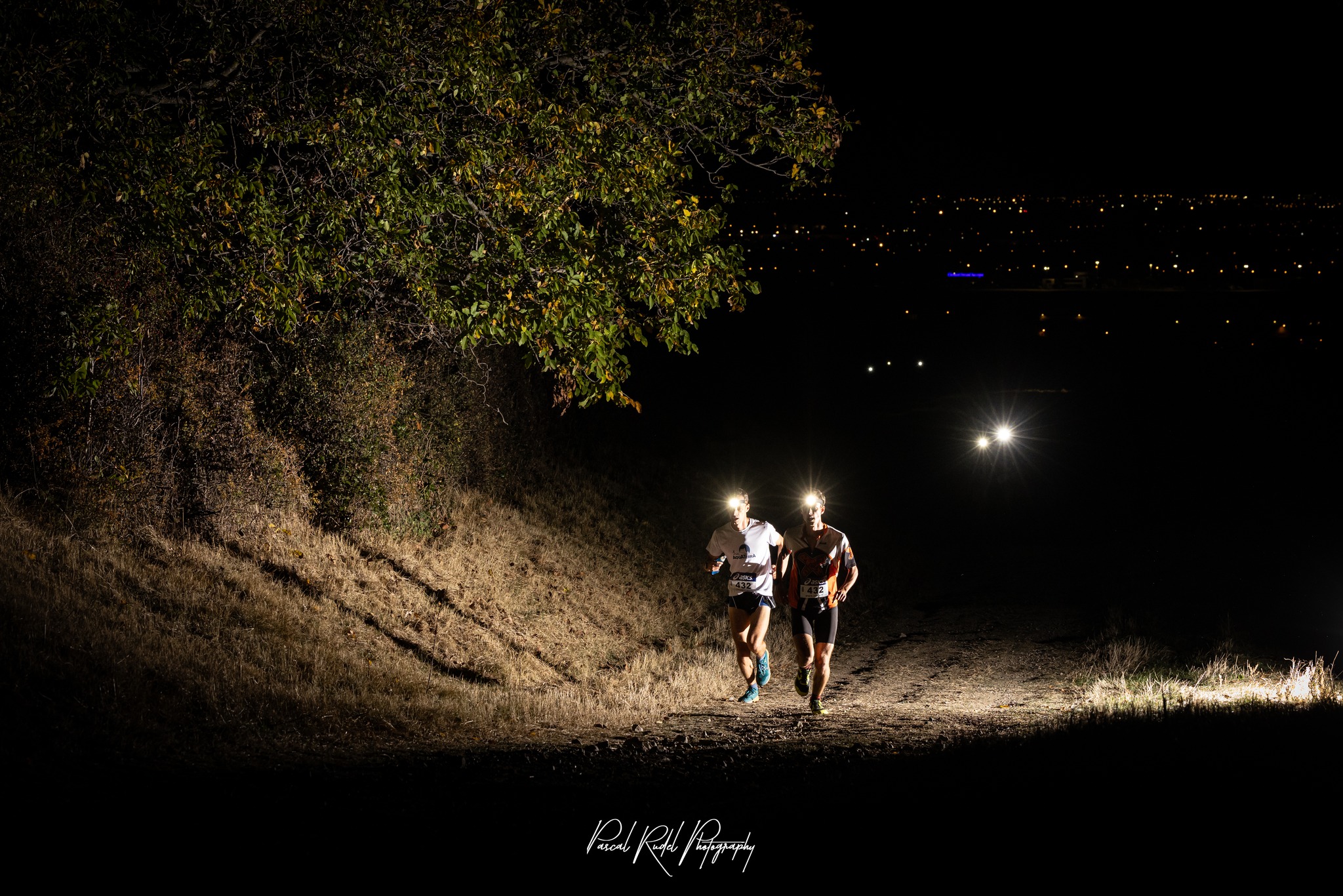 Il y a du beau monde sur la ligne de départ et en duo, les copains Arthur Raison et Romain Desmaison qui, on le sait vont nous donner du fil à retordre. Départ rapide juste derrière les 3 premiers solo. Les copains sont une vingtaine de mètres derrière jusqu'à la mi course mais ne lâchent rien. Ils passent devant dans l'ultime montée au Puy de Bane et relancent fort dans la descente. On ne peut pas suivre mais notre rythme est toujours bon malgré tout et nous terminons ce 12km 260d+ à 15km/h de moyenne, les bronches en feu et les jambes bien dures ! Vivement le 10 Novembre à Parent pour l'épisode 2 des courses en duo de ce début (ou fin ? je sais jamais) de saison !